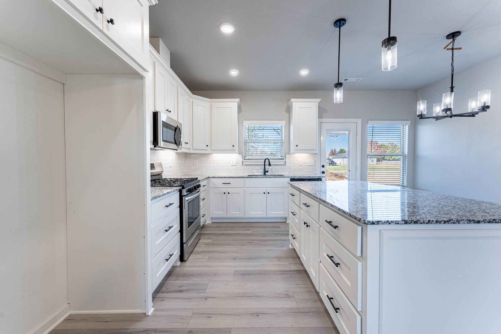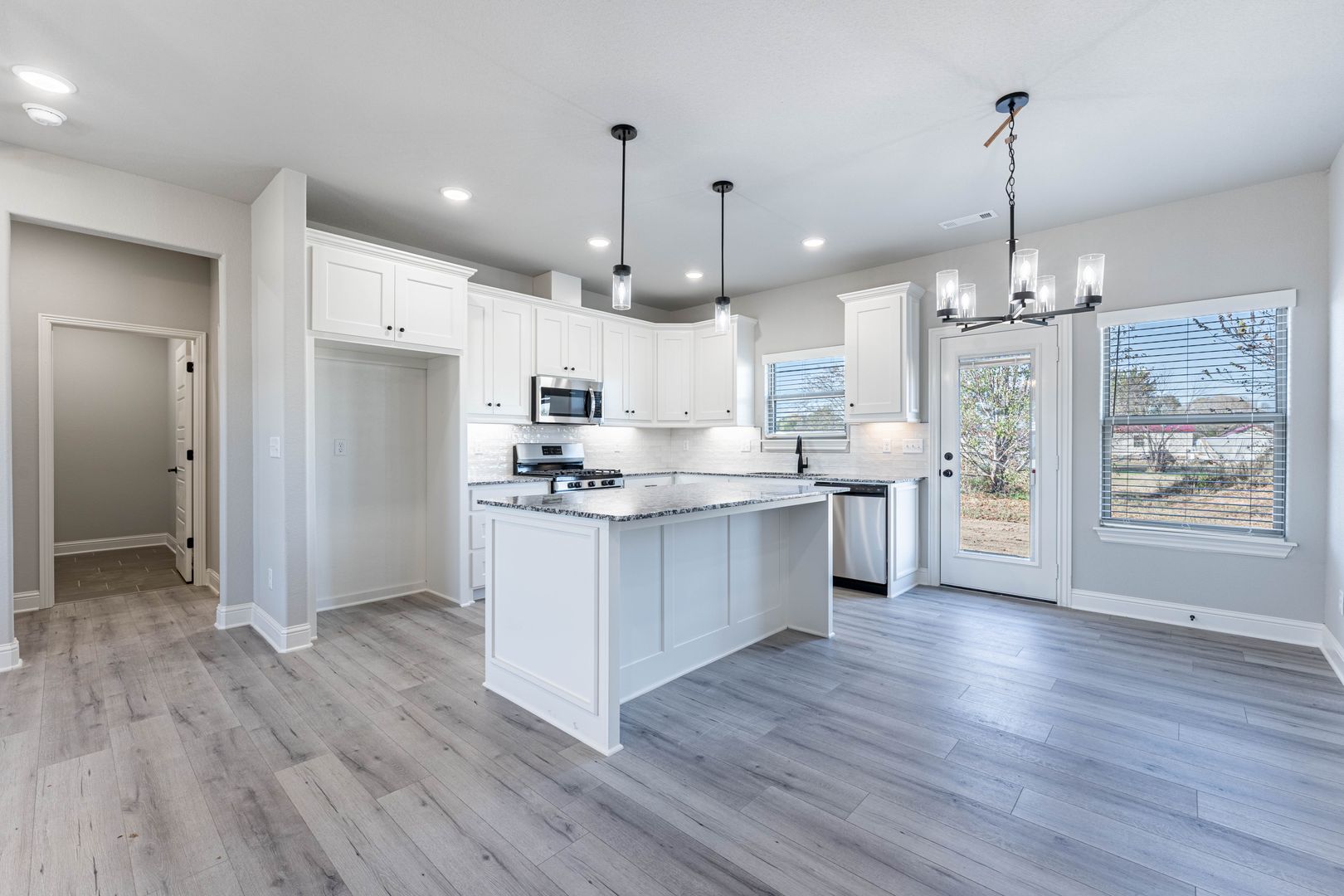 Welcome to your Next Home! This charming three-bedroom, two-bathroom newer construction is ready for you to move in. Featuring an open floor plan with no carpeting, it boasts beautiful wood laminate flooring throughout. Enjoy the elegance of stainless steel appliances and stunning granite countertops.